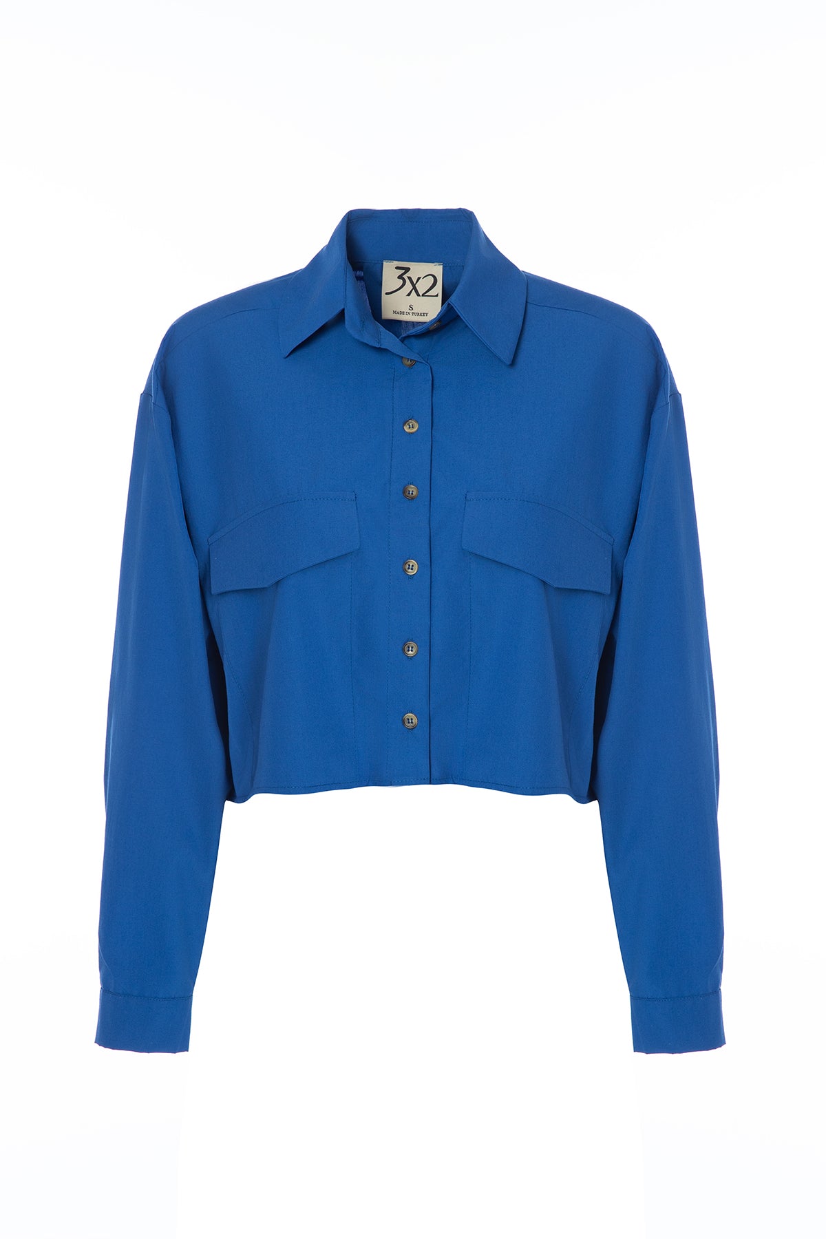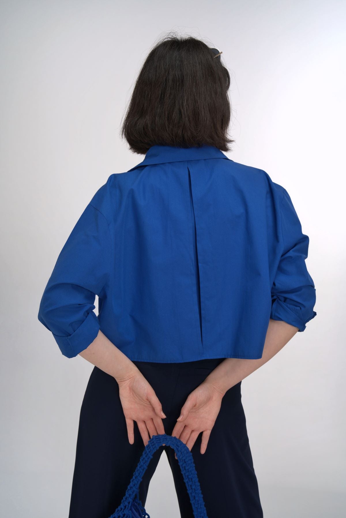 The combination of pockets brought by the utility trend with poplin shirts has become an indispensable part of our daily wear. Either combine it with a crew neck tops as a jacket or draw attention to the crop cut by buttoning it up.