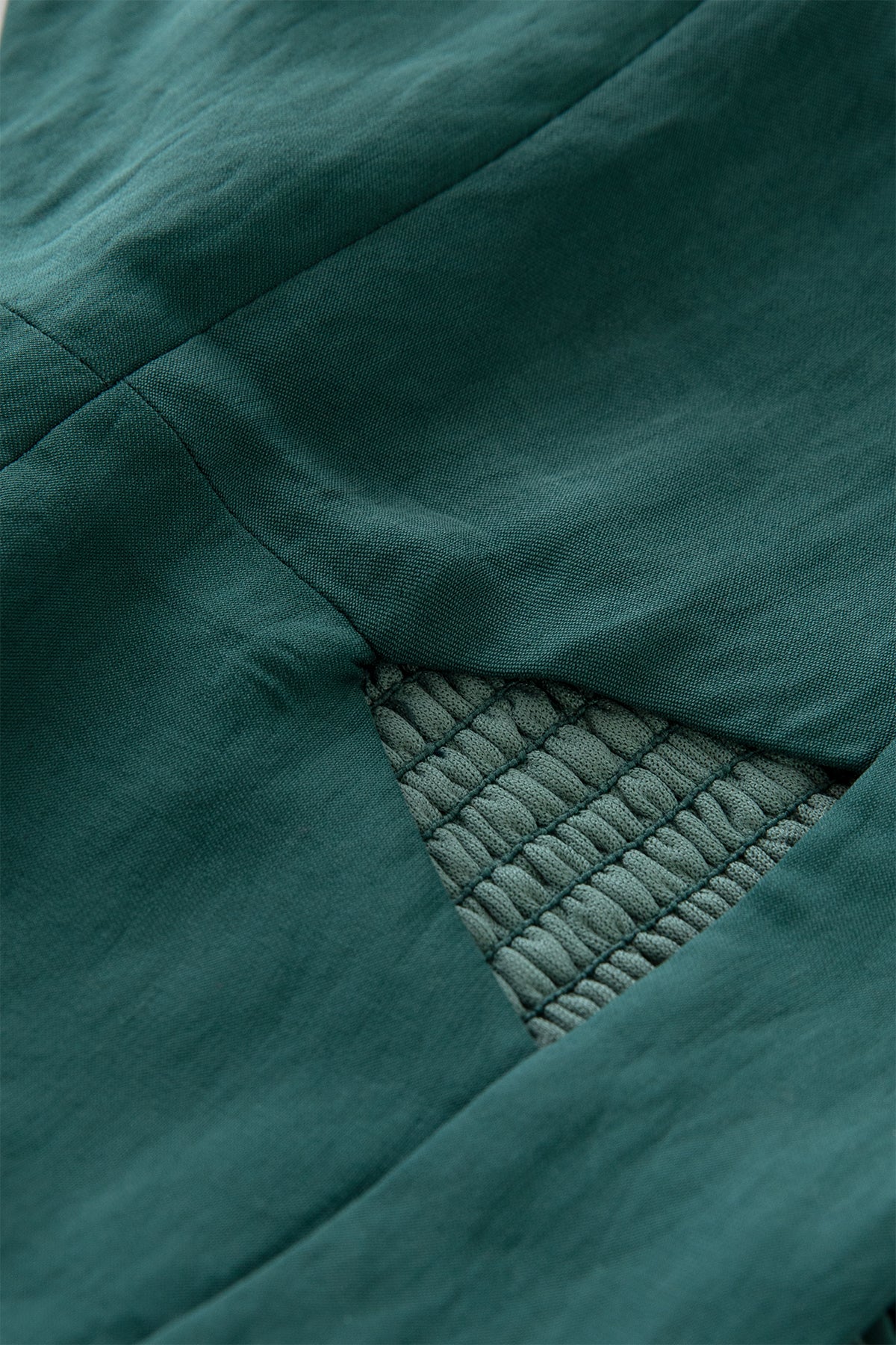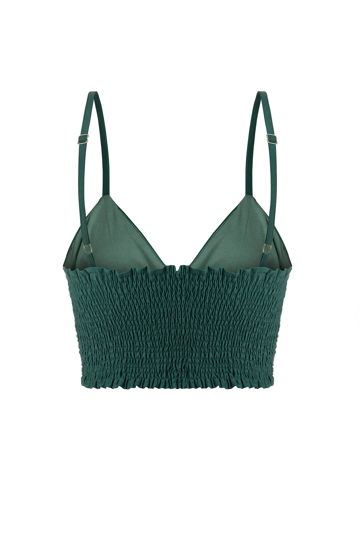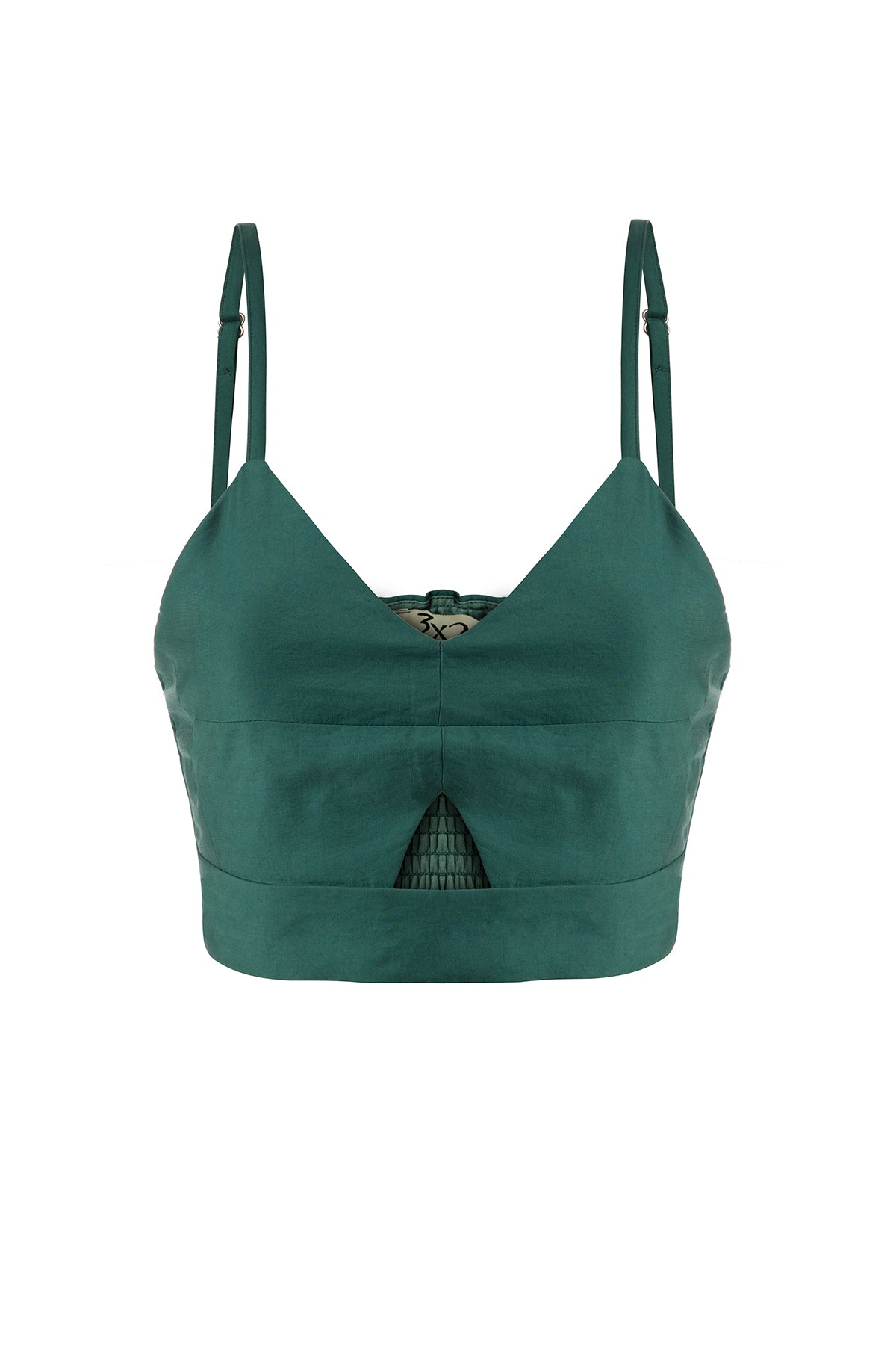 - Thin adjustable rope fabric straps, triangular decollete detail on the chest,