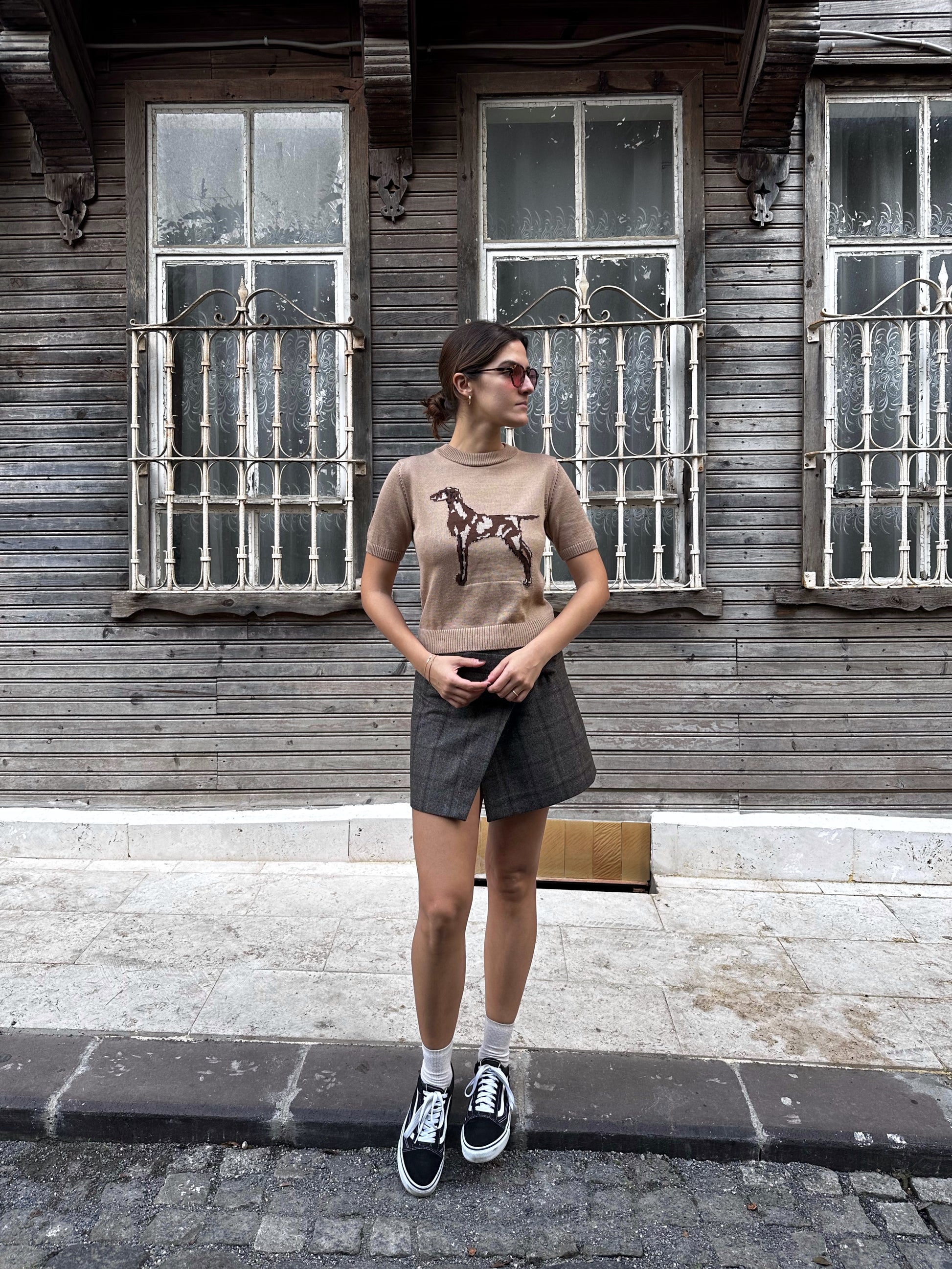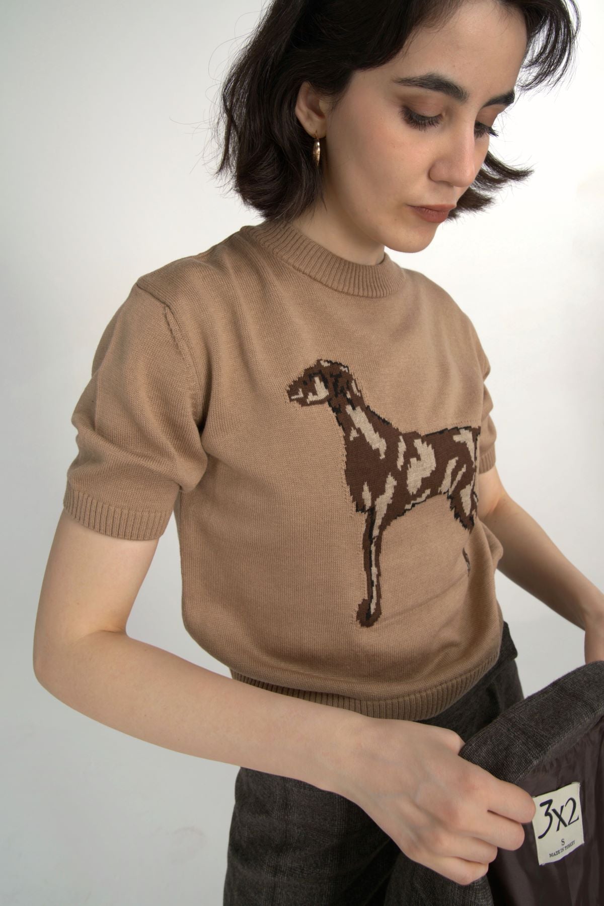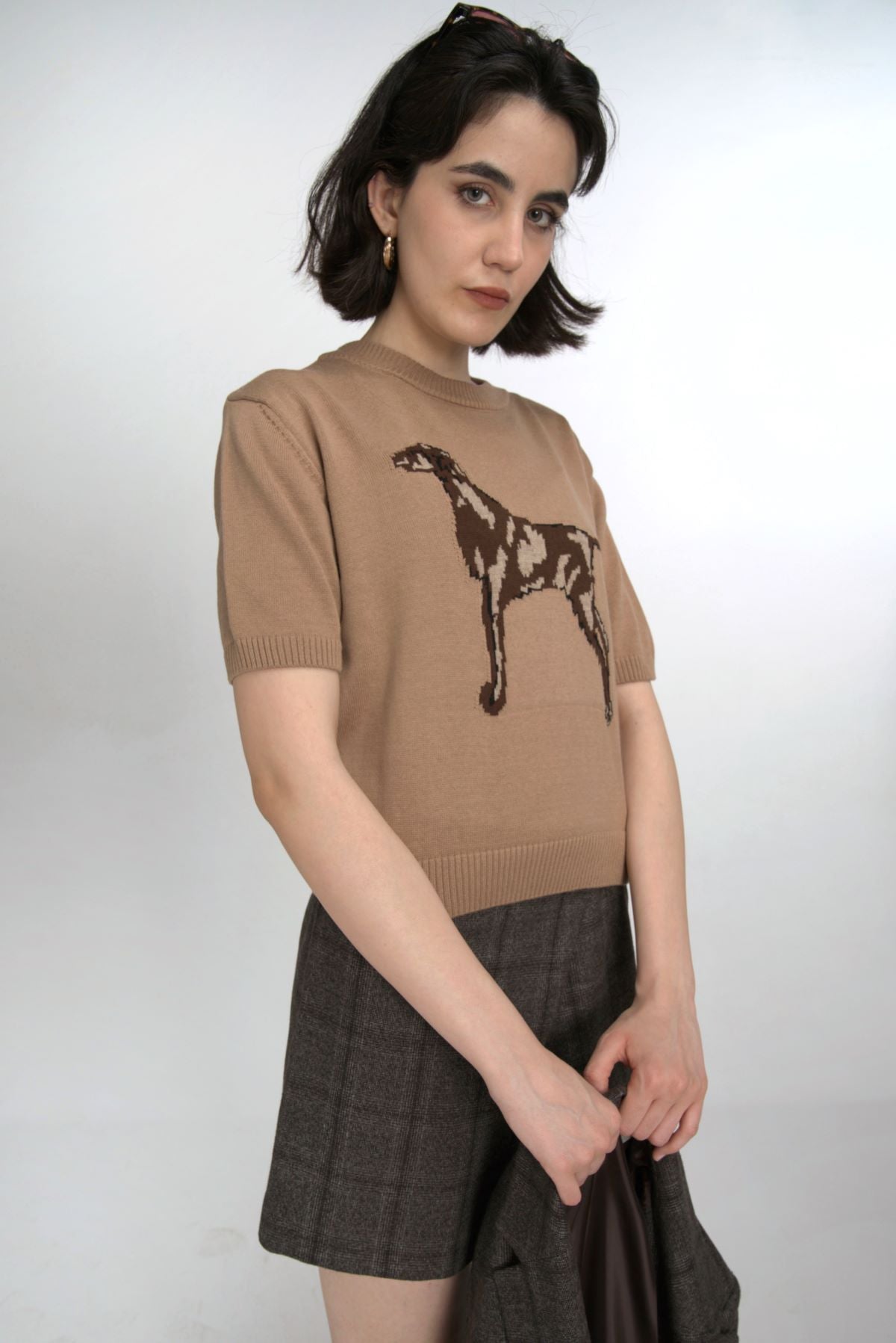 Dog Figured Short Sleeve Sweater