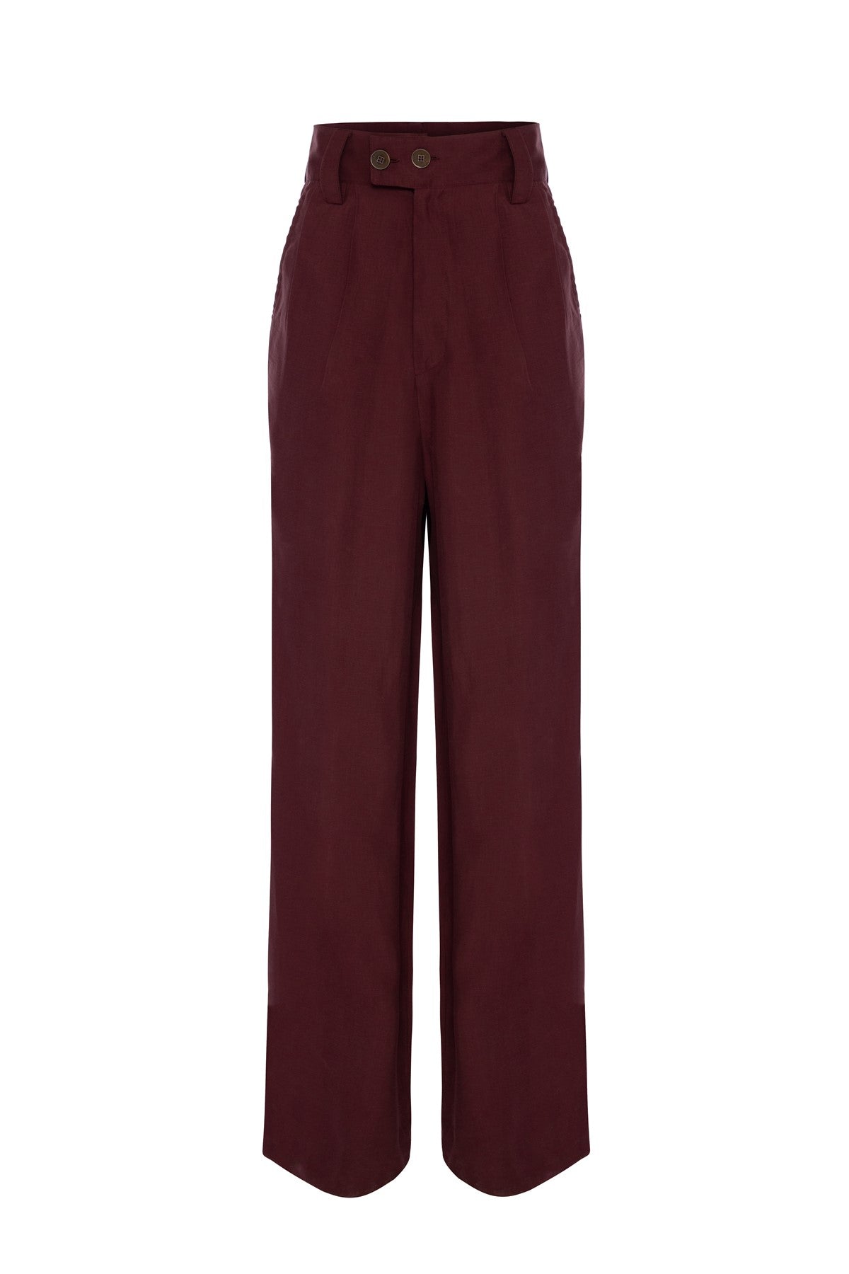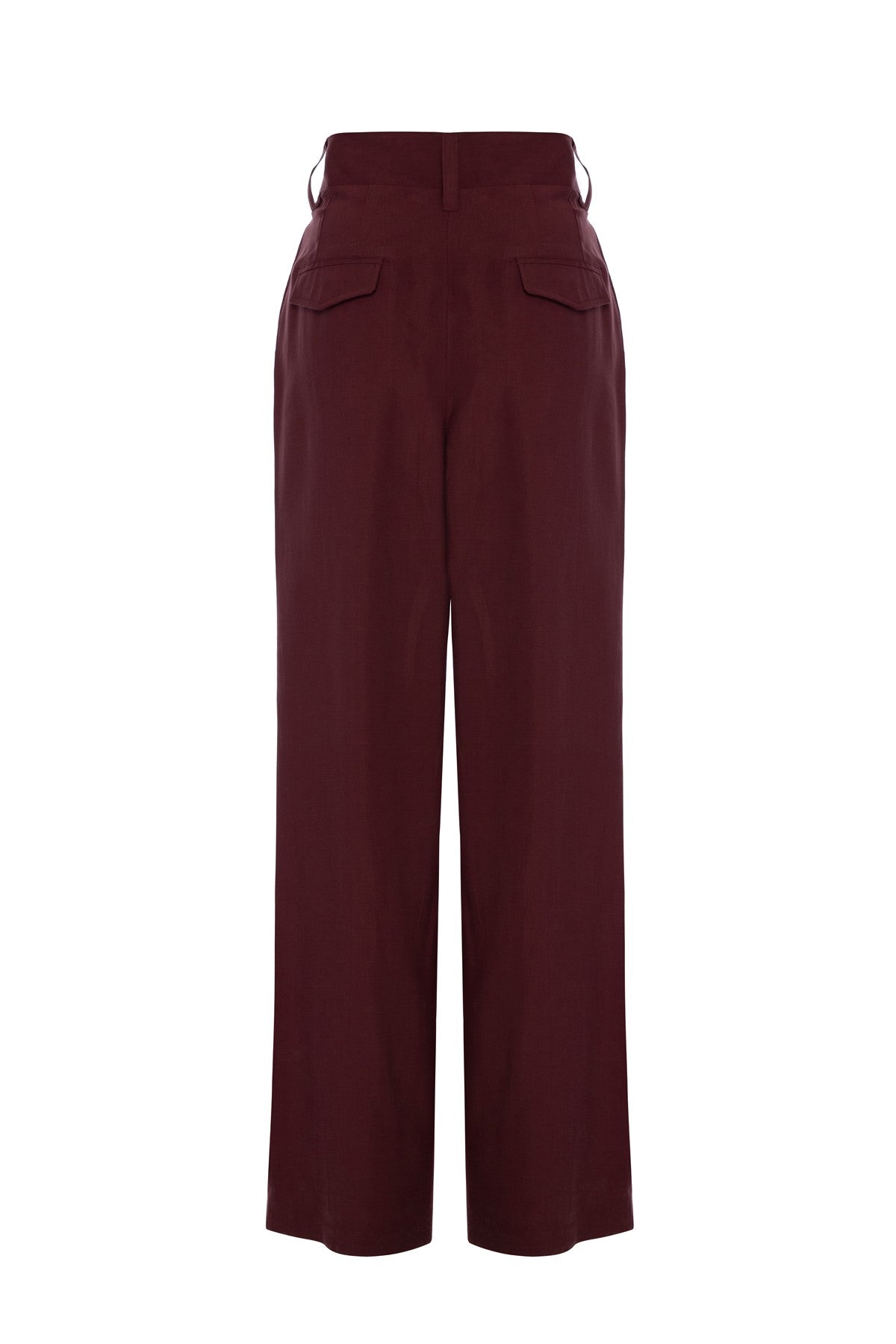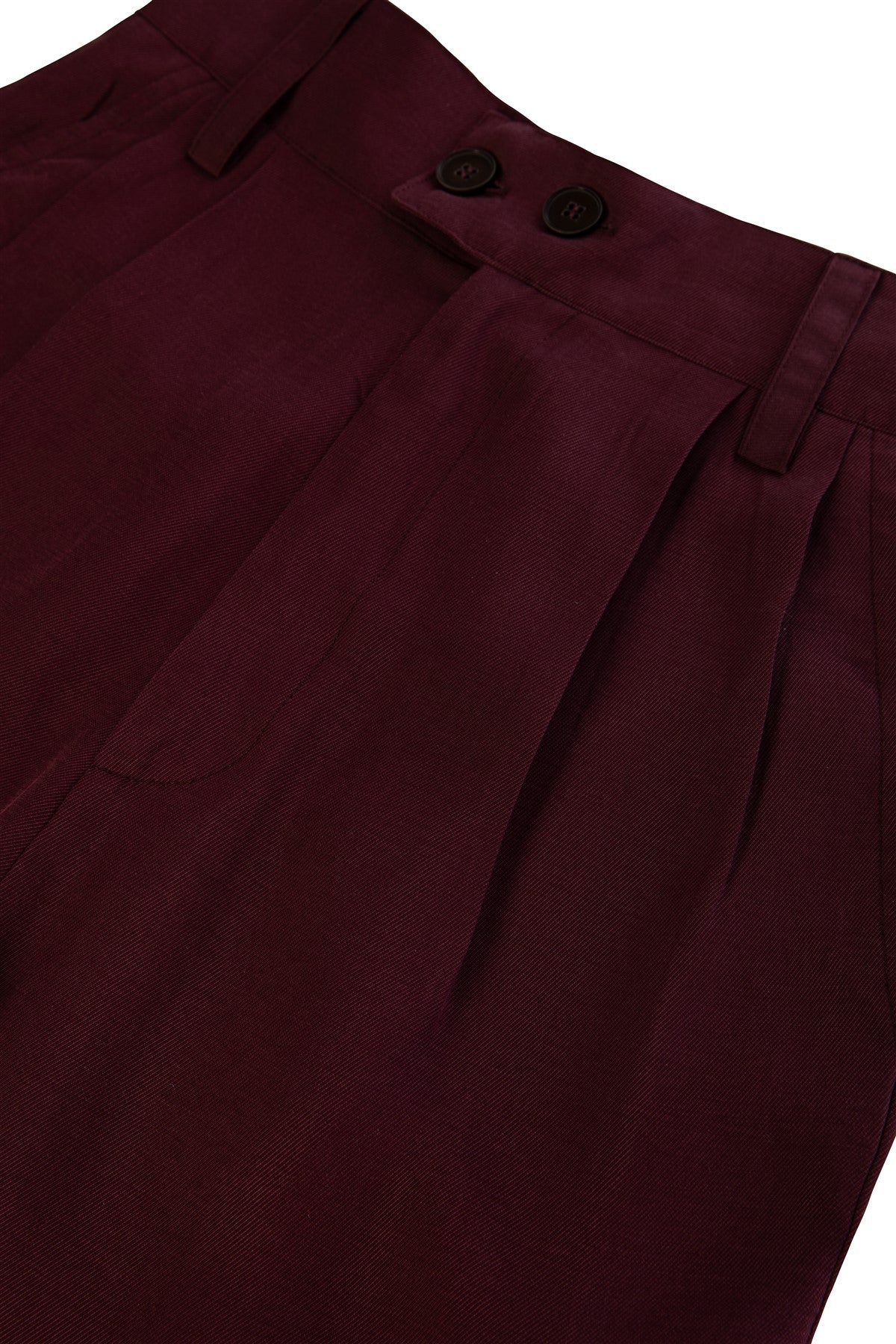 Mürdüm Rengi Yüksek Bel Pileli Pantolon